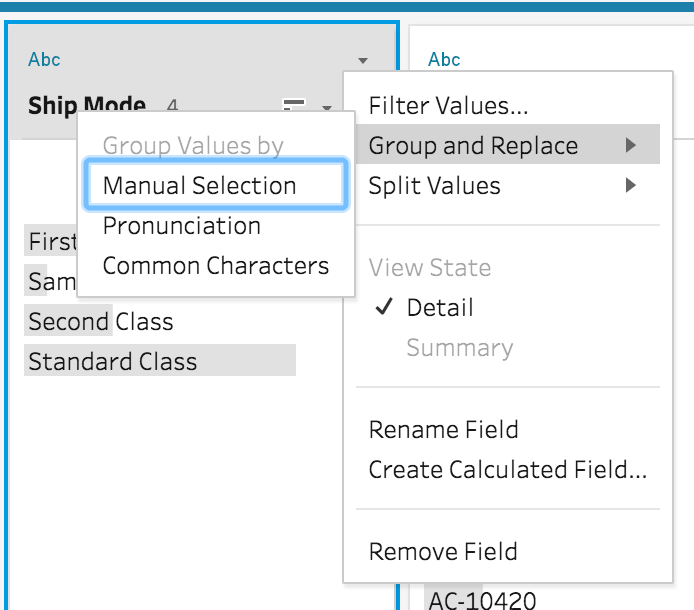 Ander voorbeeld: je hebt verschillende categorieën waarbij er 2 nagenoeg hetzelfde zijn, bijvoorbeeld ‘West’ en ‘Westen’. Als je graag ‘West’ wilt behouden, dan kun je met rechter muis klik op ‘Westen’ de naam wijzigen in ‘West’, en -boom- je hebt je databron aangepast. Eenvoudiger kan niet. Oh ja, toch wel, je kunt nl ook met Group and Replace / Pronunciation Tableau laten bepalen welke waarden op elkaar lijken en die automatisch laten samenvoegen. Je kunt zo duizenden waarden in je databron met een klik laten aanpassen. Wil je zien wat je allemaal hebt gewijzigd, dan krijg je hiervan een overzicht in de Change view. Klik op een change, en de Profile wordt getoond. Toch een fout gemaakt, pas het direct aan of delete je aanpassing. Iedere waarde in je data kun je op deze manier aanpassen. Ook bij het joinen is dit erg handig mocht je bv een type fout in een ID hebben staan.
