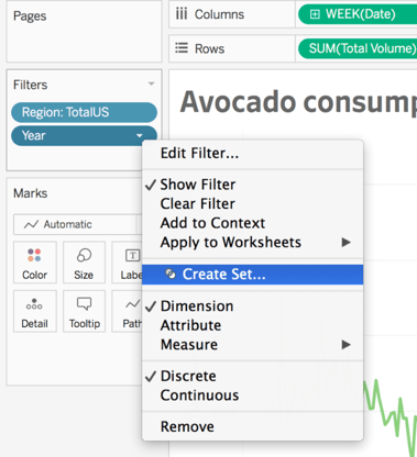 Stap 1: Klik met je rechtermuisknop op de filter “Year” en kies “Create Set”