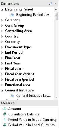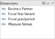 | Filters | When you display a filter for a cube dimension, all levels of the hierarchy for that dimension are included in the filter. For example: you can use cube attributes as filters, to show just a single level instead of a hierarchy. In the Data pane, attributes appear in the Dimensions section and are indicated by this icon: slicing filters behave differently with a cube data source than with a relational data source. See Create Slicing Filters for details. Some dimension Sets |