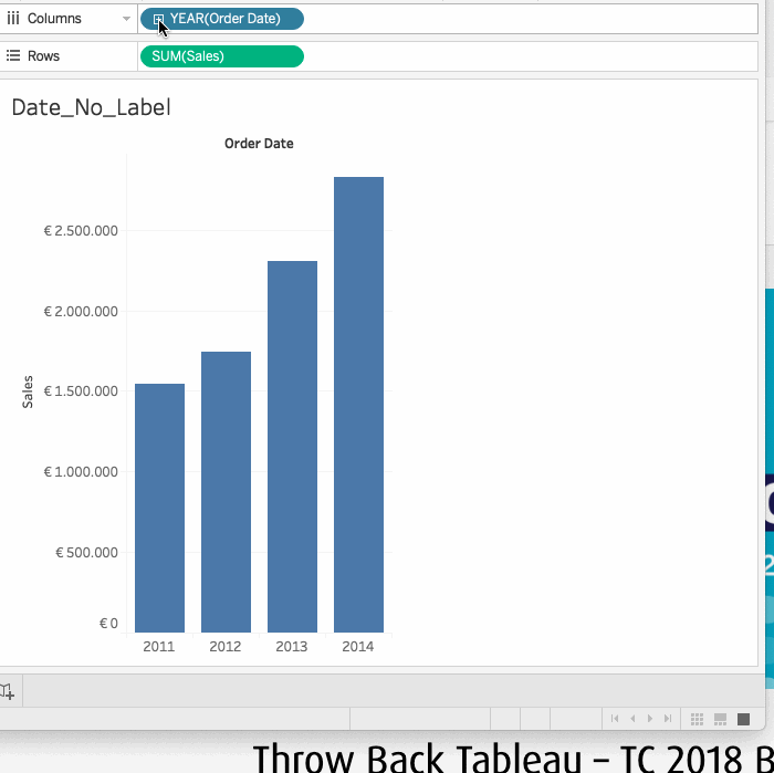 So let us change the order, and use the original Order_Date to order our Date_Label field. As our label is based on an original date field, we can order it by the minimum of that datapoint. Like this: