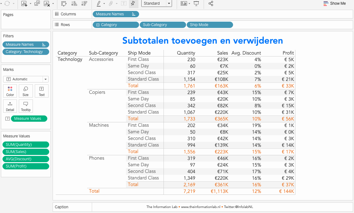 How to: verwijderen en toevoegen van totalen en subtotalen in Tableau Desktop