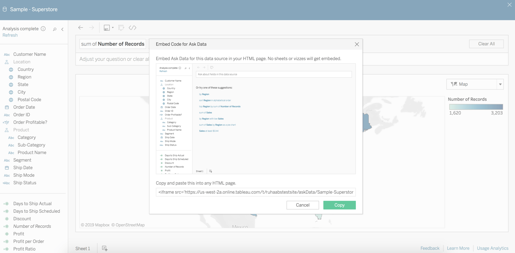 In versie 2019.2 is ask data aangekondigd, hier kun je in normale (Engelse) zinnen vragen stellen aan je data, en vervolgens een passende visualisatie te zien krijgen. Het brein werkt nu eenmaal niet als een computer programma, en door gewone mensentaal te gebruiken kom je toch aan je inzichten. In versie 2019.3 wordt ask data ook embedded. Je kan ask data bijvoorbeeld ‘embedden’ op je bedrijfsportal, om zo veel meer mensen vragen te laten stellen aan de data.