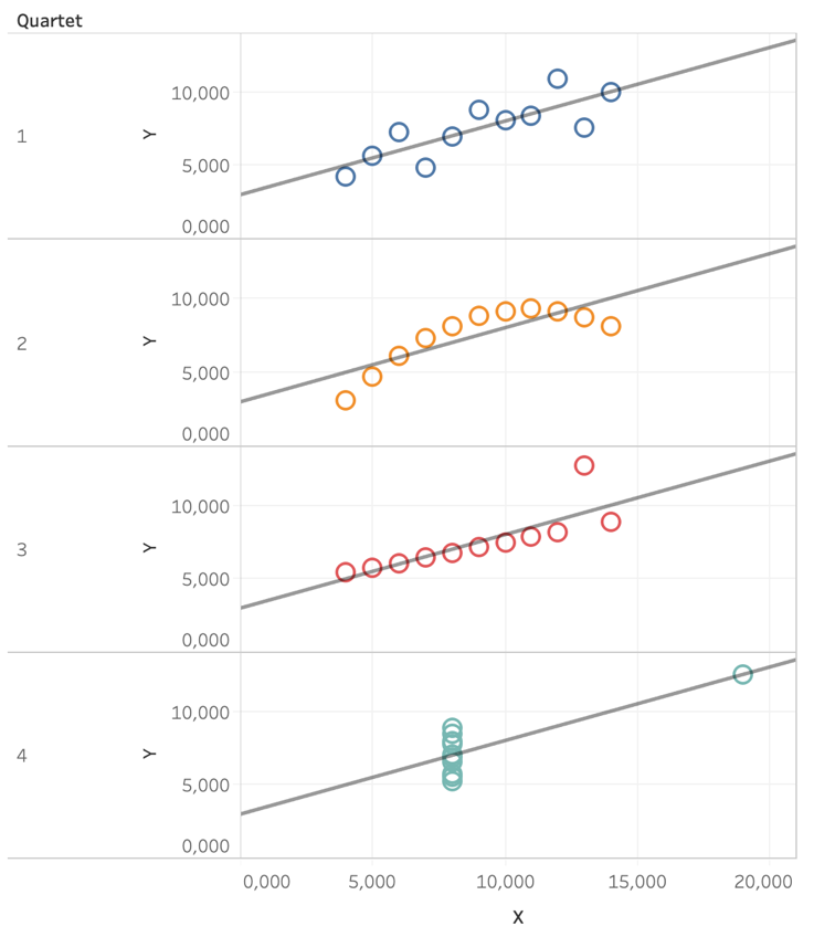 French statistician Francis Anscombe created four datasets to show why we should first visualize information before analyzing it.