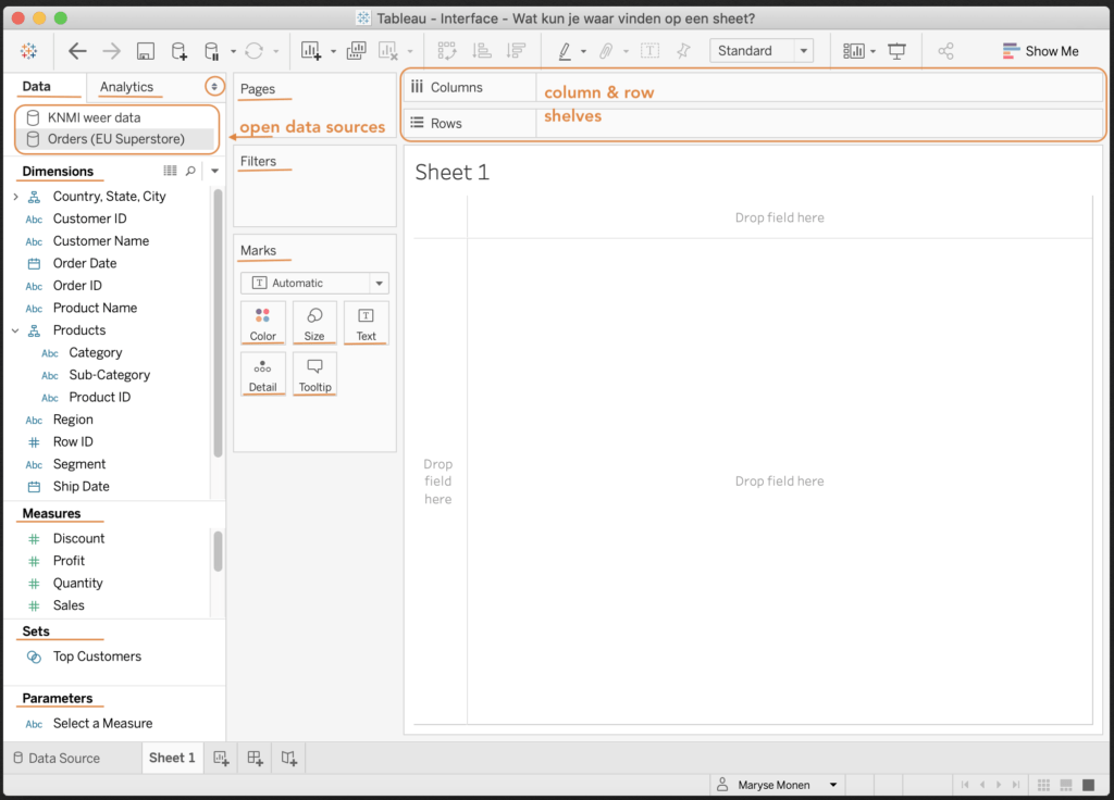 Beginnen met Tableau – Waar kun je wat vinden op een sheet?