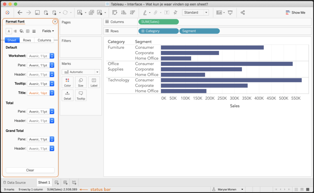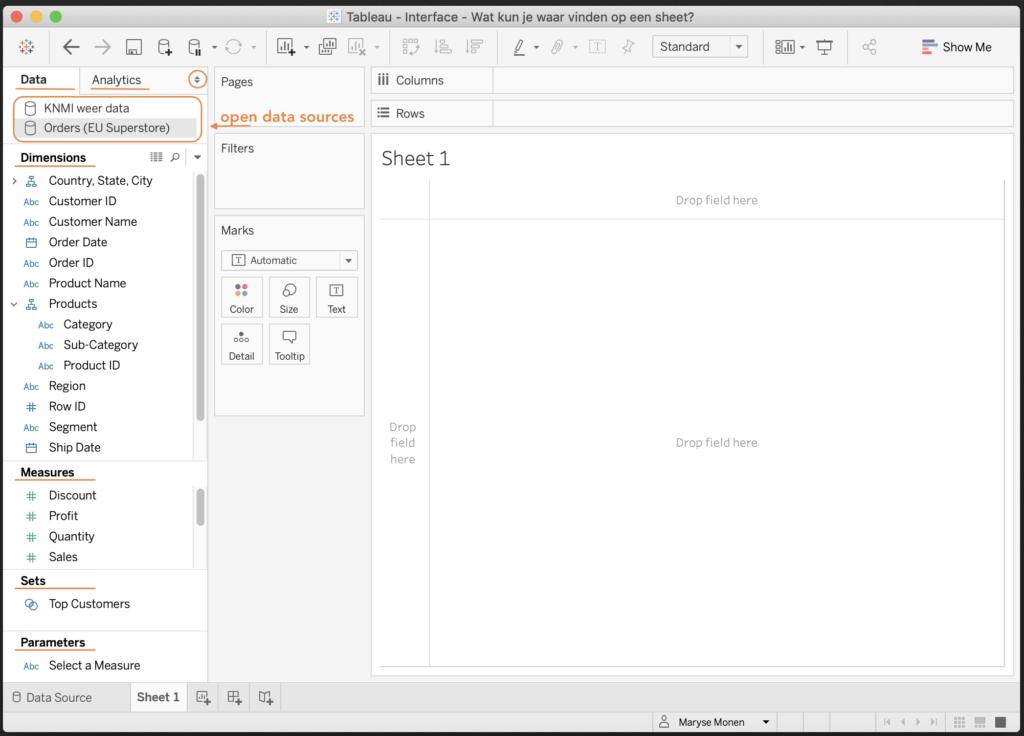 Beginnen met Tableau - Waar kun je wat vinden op een sheet?