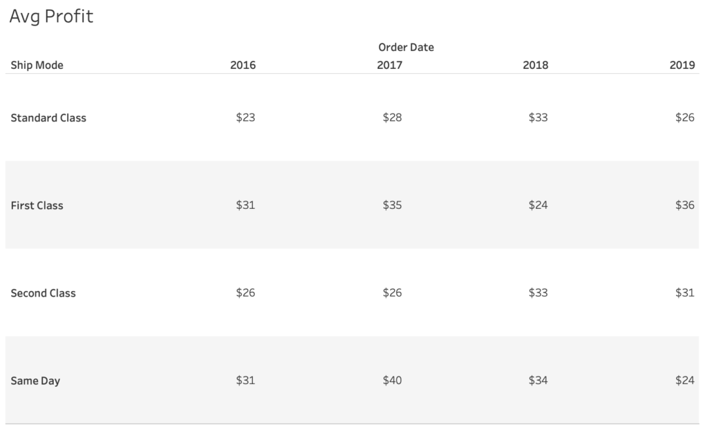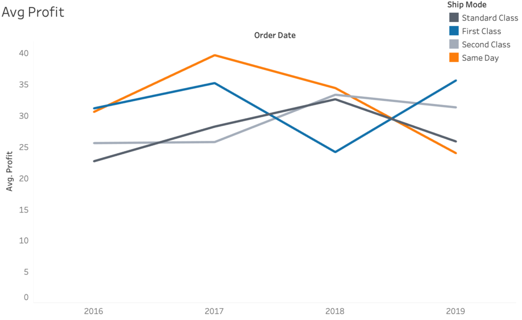 Which shipping mode has decreased the most in average profit?