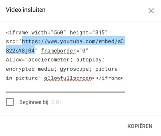 You can find the embedded YouTube link by clicking the Share button under the video, click Embed and copy the part of the link that’s in between the quotation marks: