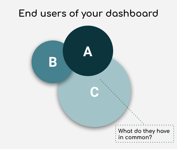 - Wie zijn de eindgebruikers van het dashboard? Is dit enkel voor jouw eigen gebruik, een groep mensen of zijn het collega’s van verschillende afdelingen? Wanneer het dashboard enkel voor eigen gebruik is zal minder uitleg van definities nodig zijn om het dashboard te gebruiken. Als het dashboard wordt gedeeld met grotere afdelingen is meer toelichting noodzakelijk zodat data op dezelfde manier wordt geïnterpreteerd en eventuele filters op de juiste manier worden gebruikt. Wanneer het dashboard wordt gebruikt voor verschillende lagen binnen een organisatie, denk dan ook na over de diverse doelen die men heeft en wat het gemeenschappelijke doel is.
