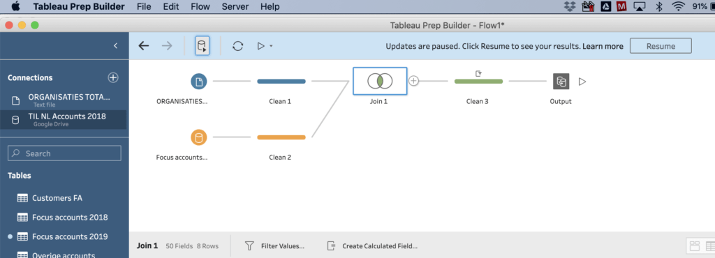 Als je grote bestanden aan het bewerken bent in Tableau Prep, dan zie je direct wat je aan het doen bent, dankzij de visuele weergave. Erg handig, maar met heel veel records soms wat traag.