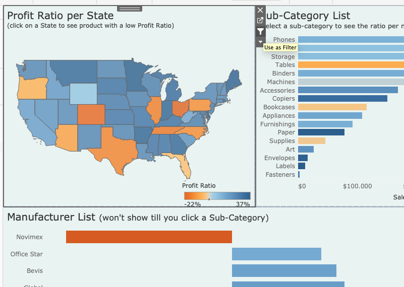 Working on a dashboard and using Action Filters I sometimes forget I have more option than just clicking the ‘use as filter’ for a sheet.