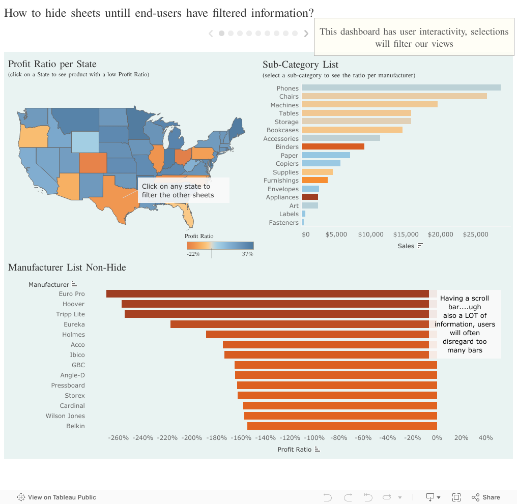 Vooral als één van mijn sheets meer data laat zien dat ik wil, en het misschien beter/mooier is dit niet te laten zien tot de hoeveelheid wat vermindert is door gebruik te maken van dashboard interactie.