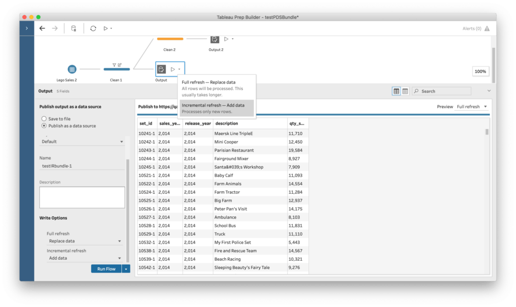 Er zijn voornamelijk 2 nieuwe features in Prep die interessant zijn. De eerste is incremental data refresh. Alleen de nieuwe data wordt opgehaald, zodat je dus niet je complete dataset opnieuw hoeft te uploaden. Dit gaat je veel tijd besparen en performance verbeteren.