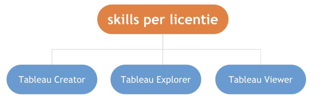 De meest voorkomende manier hoe organisaties momenteel de analytische skills opbouwen is training per licentierol. We herkennen hier binnen Tableau de Tableau Creator, Tableau Explorer en Tableau Viewer. Hier horen bijvoorbeeld de bekende classroom trainingen bij zoals Desktop I, Dekstop II en combinatie hiervan (zie training).