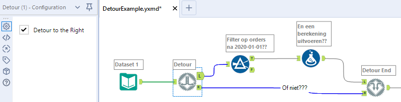 De Detour Tools in Alteryx vormen een makkelijke manier om een tijdelijke omleiding in je workflow aan te leggen. Ze kunnen goed pas van komen wanneer je a) niet zeker weet of een stukje workflow nodig is in het geheel of b) wilt schakelen tussen twee versies van een stukje uit je workflow. Zo hoef je dus niet twee losse versies van je workflow te beheren!
