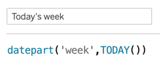 Secondly, we will create a calculated field that returns the current week number, called “Today’s week” and with the following formula. This field will return an integer.