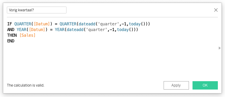 How to: Isoleren vorig kwartaal datumveld zonder filter met calculatie in Tableau Desktop