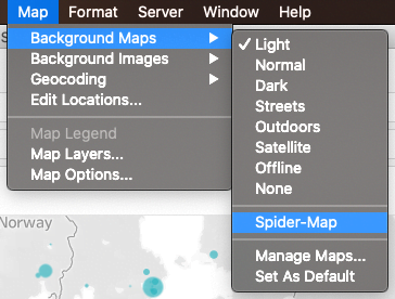 Wanneer je nu naar Maps > Background Maps gaat zul je zien dat ‘Spider-Map’ is toegevoegd aan ‘Background Maps’: