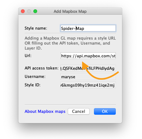 Plak vervolgens de URL, de overige credentials worden automatisch aangevuld. Het enige wat je nog hoeft te doen is je kaart een ‘Style name’ te geven.