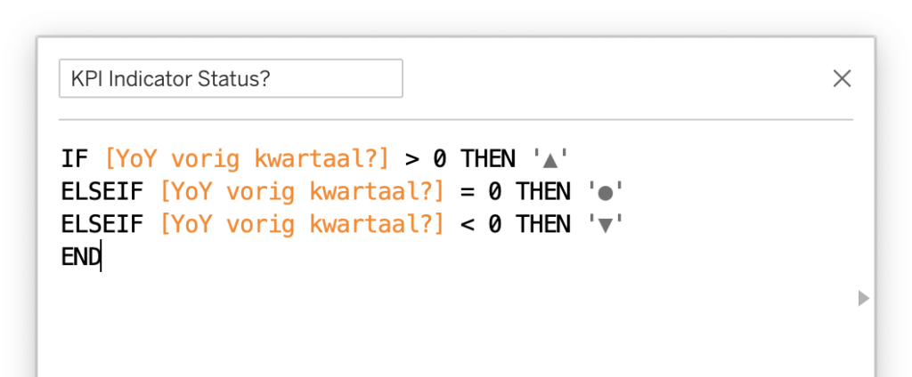 ELSEIF [YoY vorig kwartaal?] = 0 THEN ‘●’