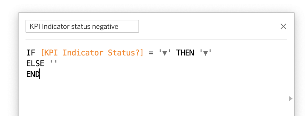 IF [KPI Indicator Status?] = ‘▼’ THEN ‘▼’