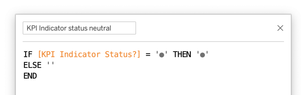 IF [KPI Indicator Status?] = ‘●’ THEN ‘●’