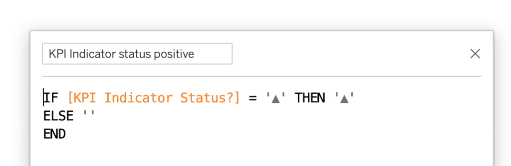 IF [KPI Indicator Status?] = ‘▲’ THEN ‘▲’
