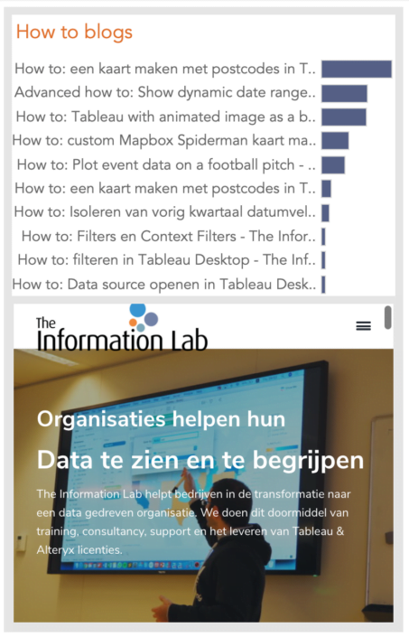 Google Analytics is een hele handige tool om inzicht te krijgen in welke pagina’s op je website goed performen, om daar vervolgens weer op in te spelen met het plannen van je nieuwe content. Vaak krijg je een lijstje te zien met pagina urls, die op zichzelf niet zoveel zeggen. Om deze effectief in een dashboard te gebruiken kun je ook een de daadwerkelijke pagina tonen in Tableau Desktop.