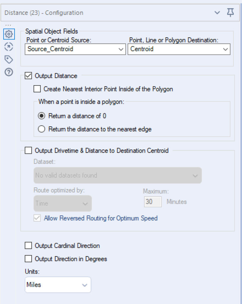 3. Thirdly, we need to use an Append Field Tool. We will connect Dataset A, the one with the restaurant address, to the S (Source) anchor and Dataset B to the T (Target) anchor. In my case, I unchecked the “Output Cardinal Direction” box as I don’t need it, and selected miles as units.