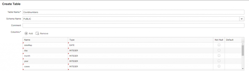 Loading the data can be done through the wizard that’s opened with “Load Table”.