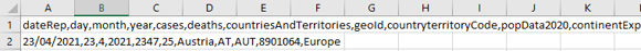 - countriesAndTerritories,geoid,countryterritoryCode are all letters/words