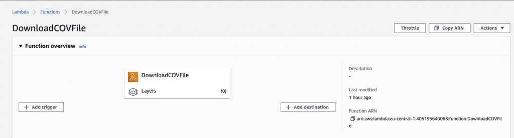 Go back to the function and open it. At the top of the screen in “Function overview” you get the option to add a Trigger :