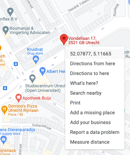 First, we are creating a CSV (Comma Separated Value) file. This file will link our store locations with a latitude and longitude. This allows Tableau to know where on the map the store is located. Note that the CSV requires a specific format. This format can be found here. The column names must match the descriptions exactly. Otherwise this method won’t work. I use Google Maps to find the coordinates. Simply type in the adres. Once you have found the location, right click. The coordinates will pop up. Click these coordinates again to cop y them to your clipboard. You can then paste this information in your CSV. In the screenshot below, you can see the resulting CSV file.