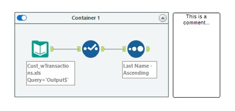 • Comment Boxes: This tool acts a notepad within your workflow. It can be quite important when workbooks are shared between colleagues where further contextual information is needed. Or even for you if you happen to revisit the workflow after some time and need a contextual refresher.