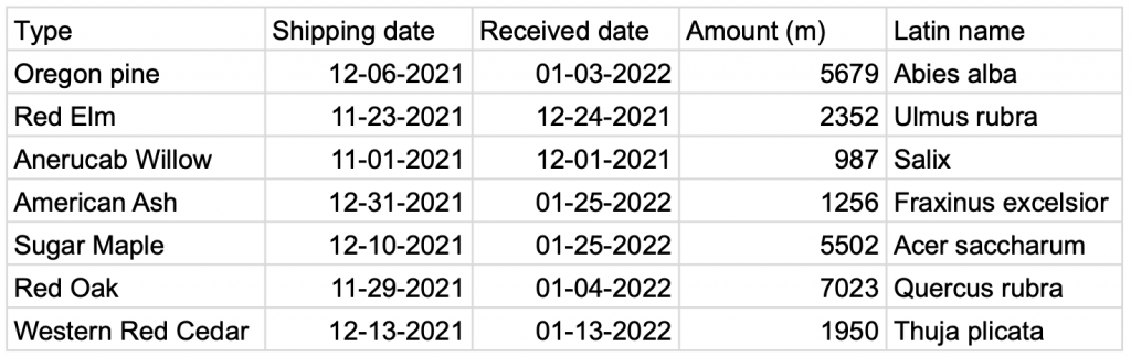 Stel een bedrijf dat hout importeert uit verschillende EU-landen en de VS ontvangt de onderstaande twee bestanden met transportgegevens. De linker tabel bevat gegevens met de Europese datumnotatie (dag-maand-jaar of dd-mm-yyyy). De rechter tabel de Amerikaanse notatie (maand-dag-jaar of mm-dd-yyyy). Voor het totaaloverzicht moet dit in één worksheet komen zonder dat er in het worksheet zelf met calculated fields gepuzzeld moet worden. (Het is namelijk handig als elke Tableau-gebruiker dezelfde kolomnamen gebruikt en in het algemeen dezelfde gegevens ontvangt).