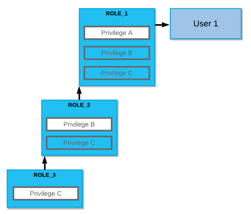 Hoewel ook vermeden moet worden om deze rol aan anderen toe te kennen, kunnen de onderliggende voorrechten (inclusief schema’s maken en tabellen maken, enz.) toegekend worden aan een andere rol die op zijn beurt eigenaar wordt van de onderliggende objecten. Dit komt door de rol-hiërarchie in Snowflake (oftewel een rol ‘erft’ een onderliggende rol).