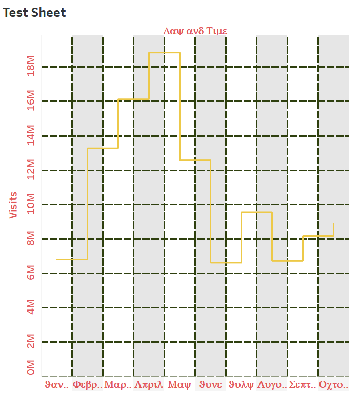 Hieronder kan je zien wat het effect is van het plakken van de opmaak. De kleuren, lettertypes, randen en lijnen worden allemaal vervangen. De opmaak van de titel, in dit geval Test Sheet, blijft hetzelfde.