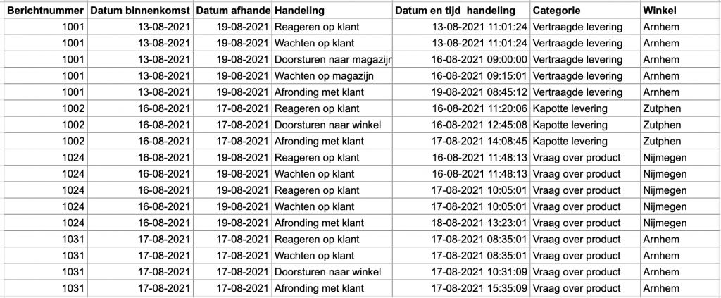 Daarnaast is er een programma waarin klachten en schades bijgehouden worden, deze software houdt ook alles bij, maar daar wordt alles bijgehouden aan de hand van het berichtnummer. Voor het gemak zijn de klachten/vragen teruggebracht drie categorieën.