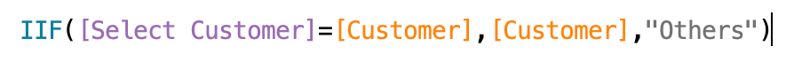 Het doel is om een overzicht te maken dat 1 gesecteerde Customer vergelijkt met een groep “Others”. Daarnaast willen we uit een dropdown die ene Customer kunnen selecteren. Hoe doen we dat? Het antwoord is eigenlijk best simpel: We maken een dimensie die bepaalt wie in “Others” zit en wie niet (die ene Customer.) Die dimensie wordt ingevuld met behulp van een parameter.