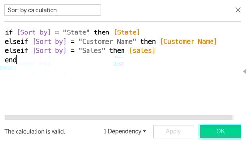Een oplossing op dit probleem is om Customer Name als eerste kolom op de linkse kant te zetten. Maar als we zeker willen zijn dat de gebruiker van onze dashboard wel op elke kolom de tafel kan sorteren, dan kunnen we een parameter gebruiken.
