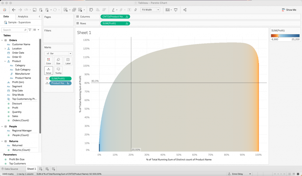 For demonstration purposes, we will be using the Sample – Superstore dataset that comes with Tableau Desktop. Before starting to make the Pareto chart, we need to define our scope. Let’s say I have a bunch of products and I want to find out which of these products are the most profitable for resale.