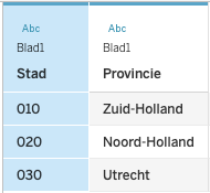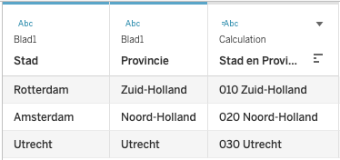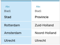 Ook wanneer je bijvoorbeeld dimensies gaat samenvoegen, zoals Stad en Provincie, dan zal in de nieuw gemaakte dimensie de onderliggende data terugkomen in het resultaat. Een kort voorbeeld: