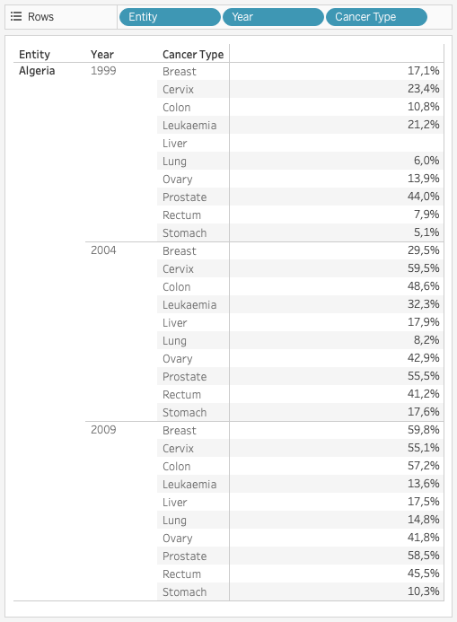 For the purpose of this viz, we will use data about cancer taken from ‘Our World in Data’, a great site hosting research and data on global problems and global changes.