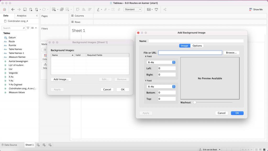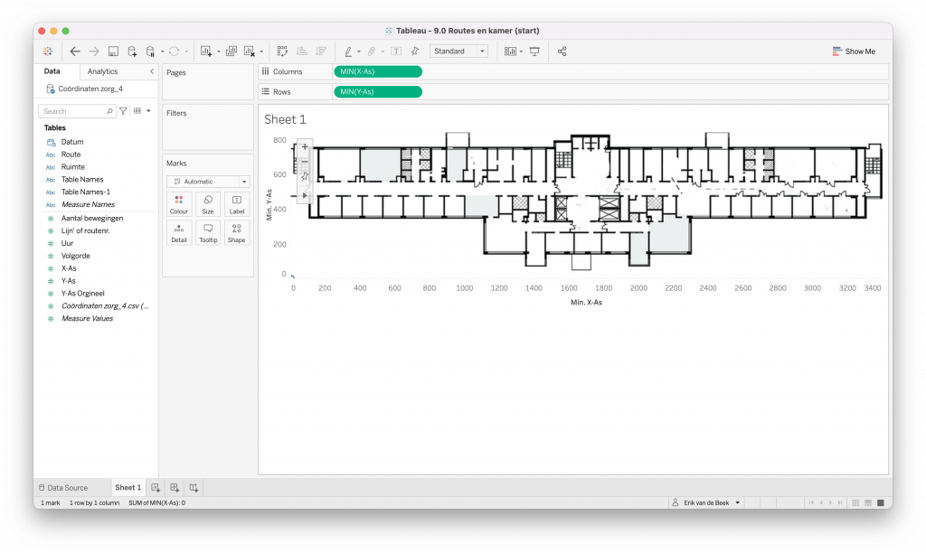 Voor een beurs werd mij gevraagd om een dashboard te maken rondom het thema zorg, ik koos voor een ontwerp waarin routes met tijd en aantal bewegingen de hoofdrol speelt, maar hoe maak je het met een afbeelding? (Dit is het het tweede deel in een reeks blogs om een workbook na te maken).