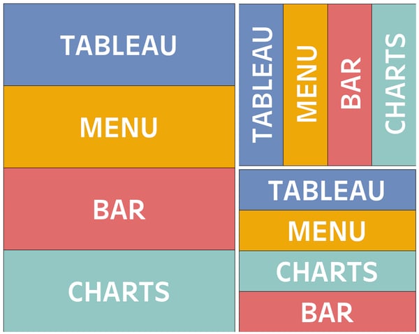 Now that we have our menu bar worksheet in place, we can add it to the dashboard and subsequently make it behave as a control for our parameter. Adding it to the dashboard is fairly straightforward. Just drag the worksheet to the View. Then delete the unnecessary containers, resize the containers, and finally hide the worksheet titles.