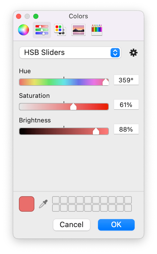 Vervolgens verschijnt er een pop-up met daarin de kleurenpaletten, als u klikt op een kleur kunt u de Hex-code aanpassen zoals onderstaand: