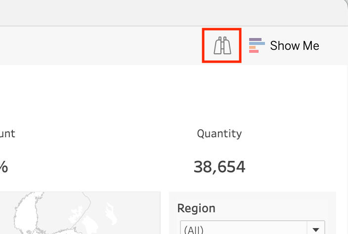 First of all, the data guide button is situated right next to the “Show Me” button in the top right corner of the interface. Clicking this will open up the new pane on the right.