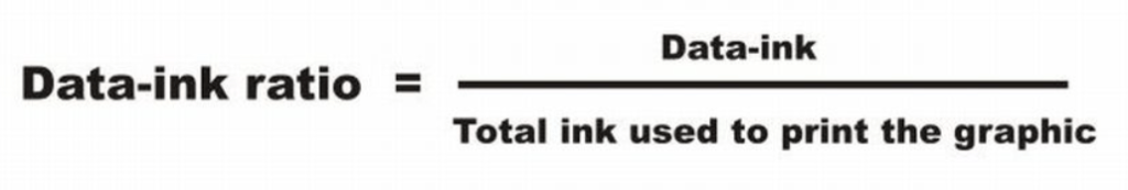 Julie gave a specific example of this by introducing us to the principle called the data-ink ratio by Edward Tufte. This principle was introduced in Edward’s book ‘The Visual Display of Quantitative Information’, published in 1983. Basically, it says that there is a ratio between the ink that is used to convey information (data-ink) compared to the ink used in the complete visualization (total-ink). He asserted that the higher the data-ink, (or conversely, the lower the non-data-ink) the better.