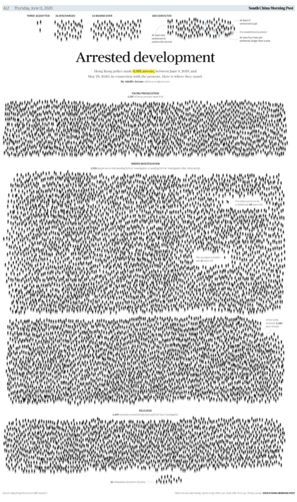 A perfect visualization instance of this can be seen in the following designs of the South China Morning Post articles. Where a simple bar or line chart would have been more than enough to be effective in conveying the data. Nonetheless, in this instance, more area or non-data-ink expressed a further bigger and clearer message.