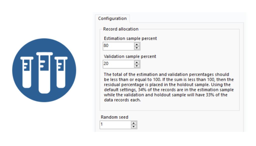 Sampling tool and configuration to split your data into training (estimation) and testing (validation) data