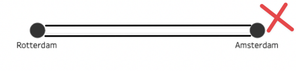 The interest in having several links joining the same nodes can come from detailing in Tableau. You can use transparency on the color of your links to represent how many times some nodes were connected. In the example below, we could see how a darker line means that there are more trains passing between Amsterdam and Rotterdam than from Amsterdam to Utrecht.
